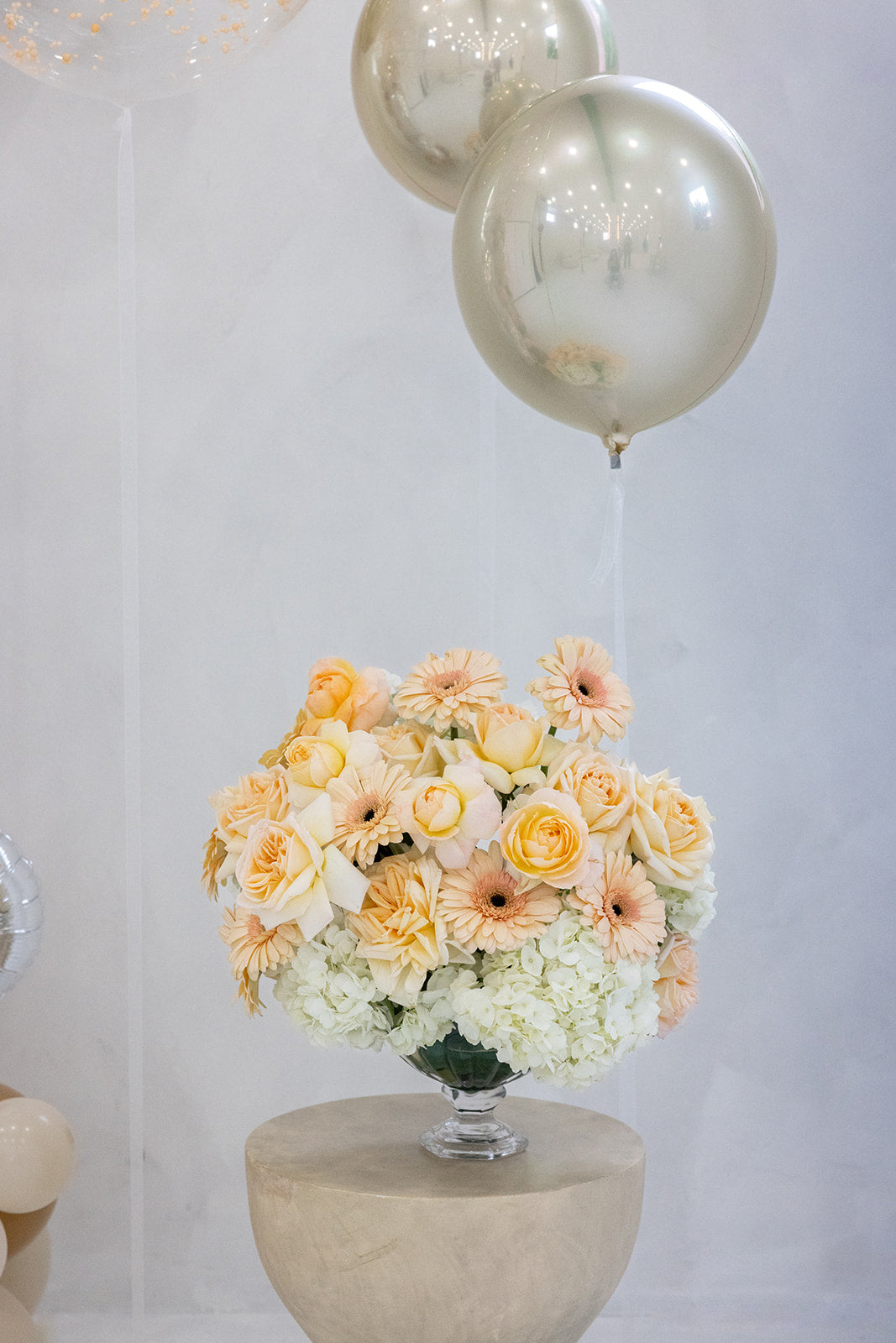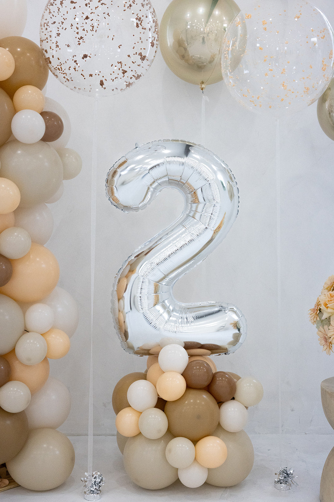 A chic and elegant balloon arrangement featuring a stunning number balloon with your years of anniversary or your significant other's initial.