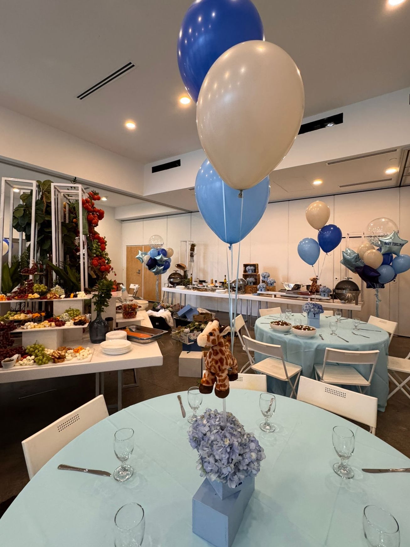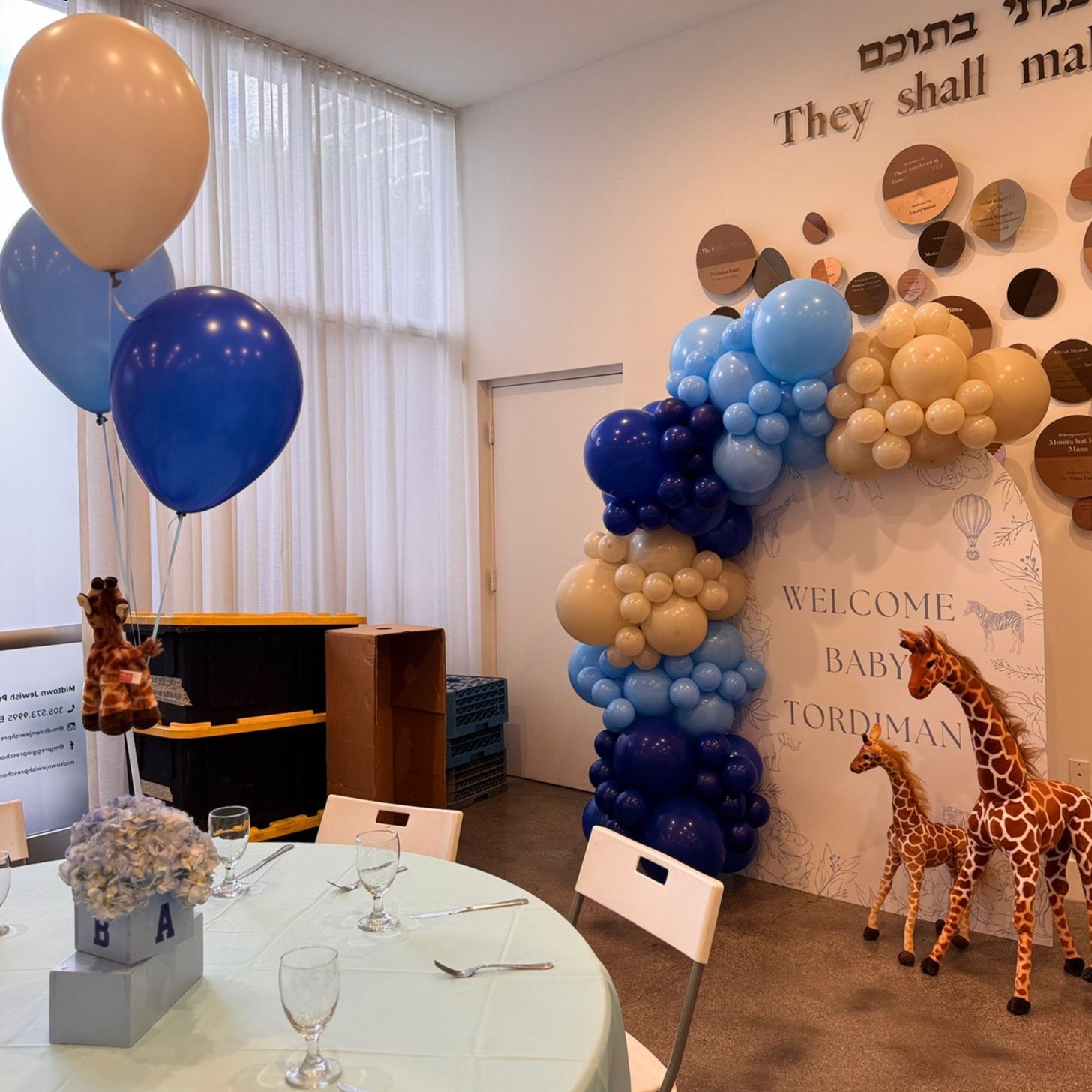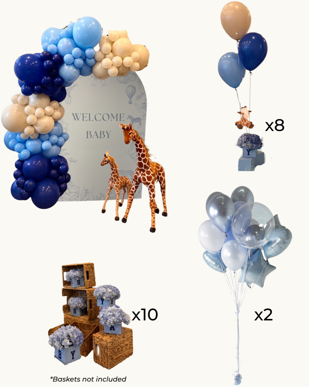 8 Centerpieces (Each includes 3 Cubes, 1 with flowers, balloons, giraffe/bear) (RENTAL)