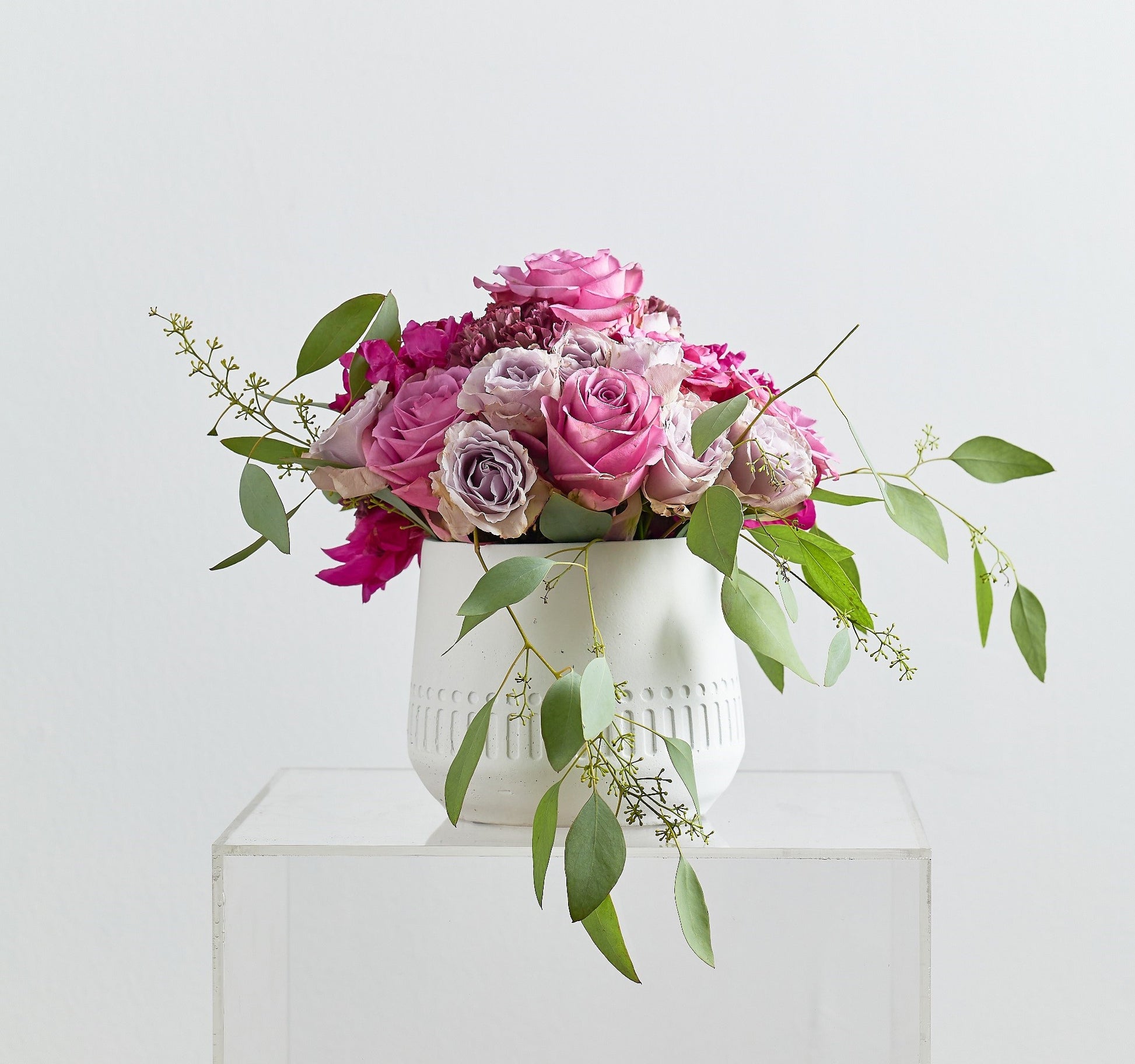Beautiful fresh arrangement in a ceramic vase, medium size.