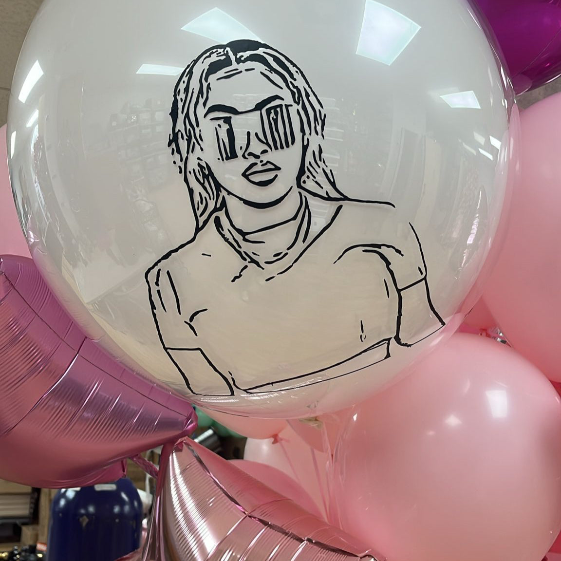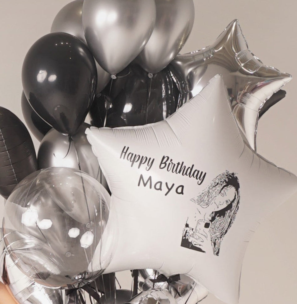 - 1 VIP picture balloon on a helium foil star 36” OR on a helium clear double stuffed 24" with picture printing (add your photo below- make sure it's a photo with details around the face, preferably portrait mode)