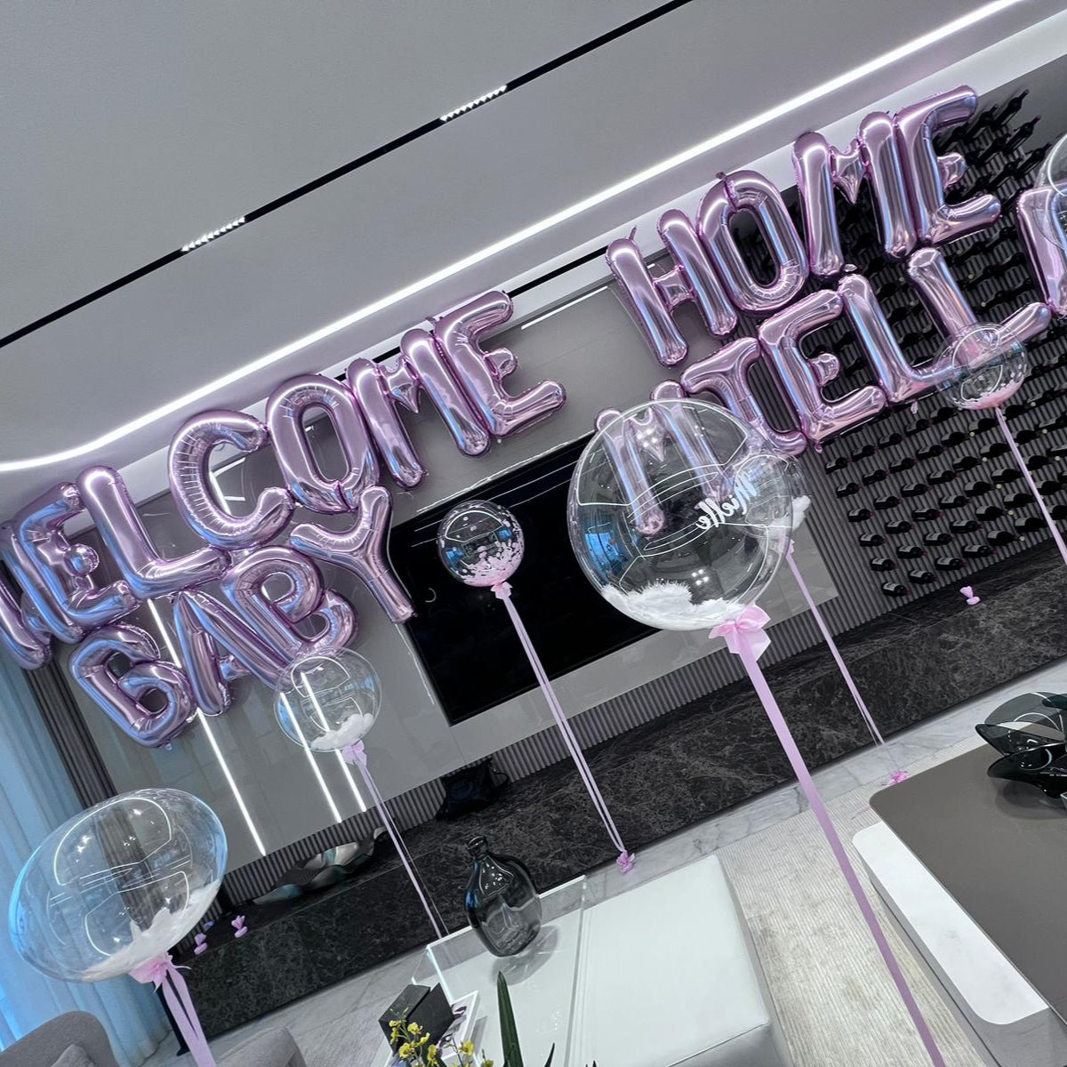 ✔ Large Foil Letter Balloons spelling out “WELCOME HOME” air-filled.